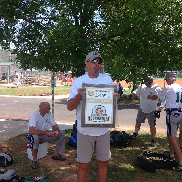 We lost a lot of close games. We were missing our regulars, Moto (California), Daryl (family), Richard (Knee surgery), Lenny (Prior commitment),and Jerry (prior commitment),for sure. A few extra hits and we could have won every game. Our subs did a great job filling in for them. Denny Reasner was All Tournament and was 15 for 17, James Mitchell was 15 for 19, Phil Roland was 13 for 17, and Mike Brothers was 13 for 15 for the weekend and did a great job at third base.
